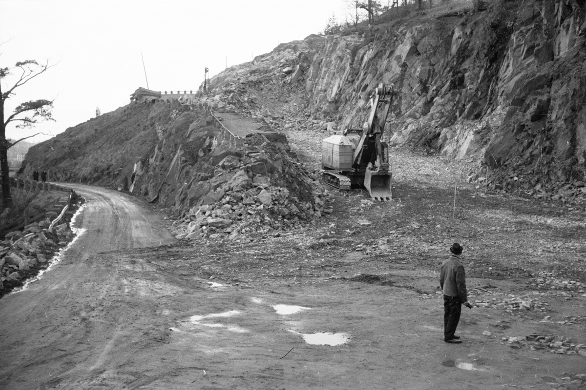 Ådalsvägen i Huskvarna ska breddas och en man står i korsningen till Smedstorpsgatan och tittar på arbetet.