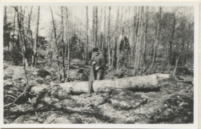 Anders Sandberg (1873-1951) arbetar i skogen, "Sandbergs" Sagered 3:3.