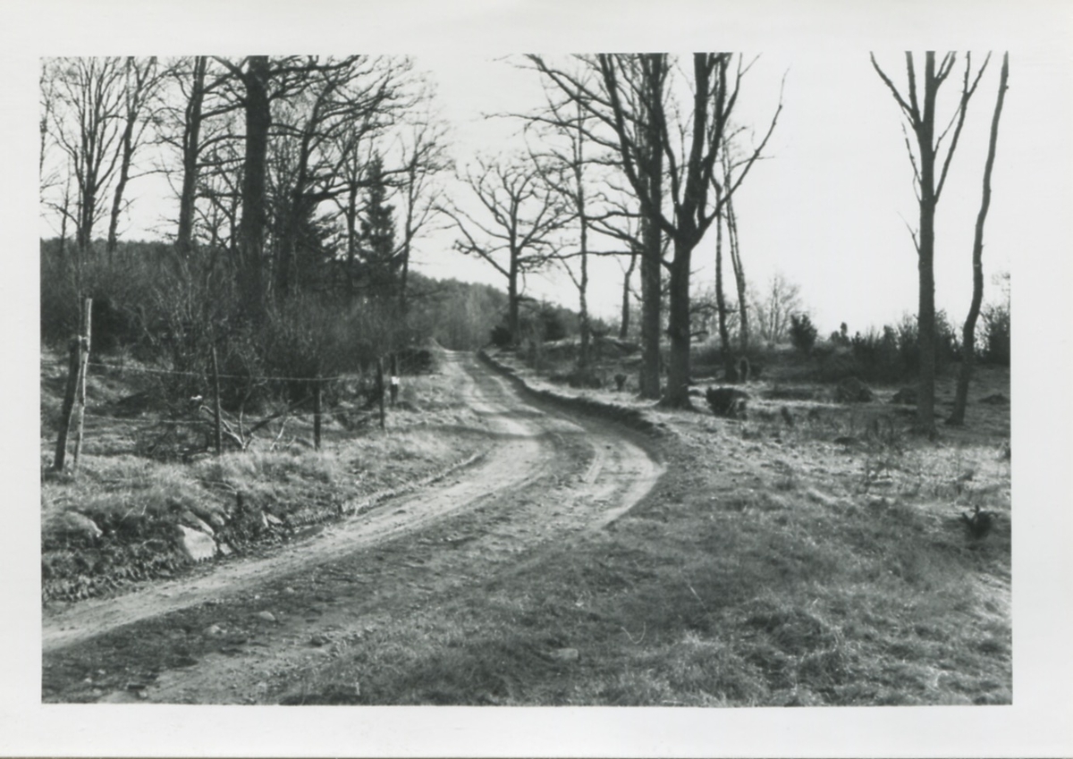 Vägen från gården "Sandbergs" Sagered 3:3 upp mot Streteredsvägen, 1957. Bildtext ur album: "Vägen uppför Kalvhagen."