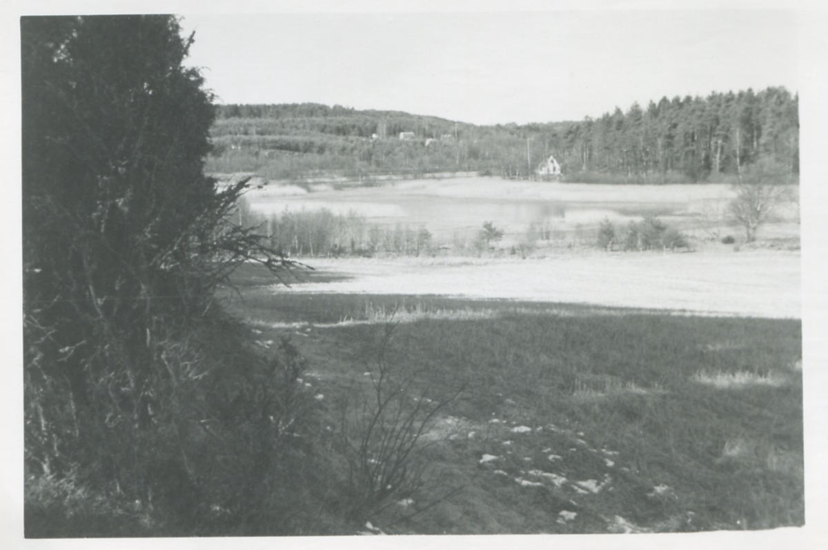 Sagered år 1957 "Vy från Bröllopet över Sagsjön." Bröllopet var ett torp i Lindome. Inköpt av Eklunds, Sagered. Huset låg på ön i Sagsjön. Där ligger idag Kriminalvårdsanstalten Sagsjön.