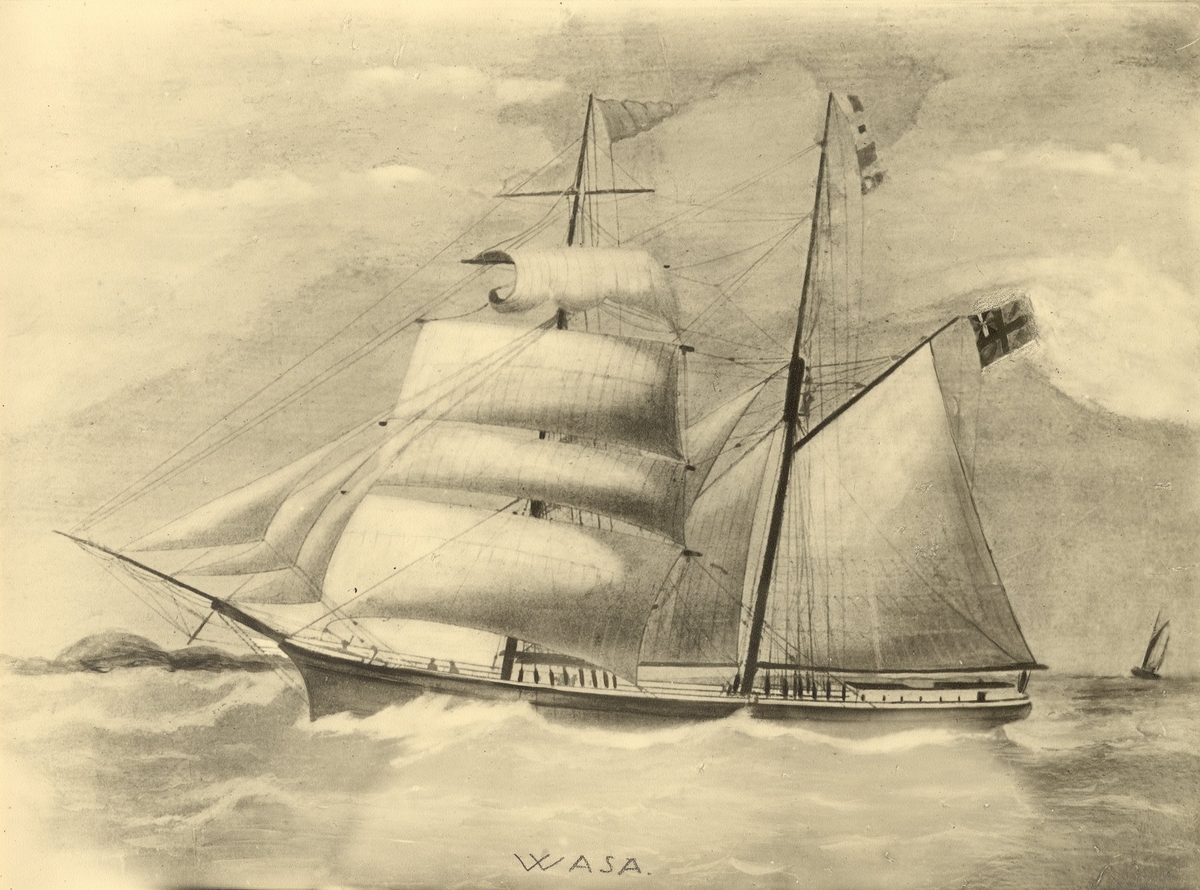 Skonert från Figeholm, byggd där. Originalmålning i Figeholm, foto H.Sage, Figeholm