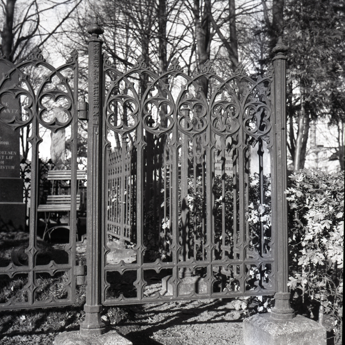Kockums fabriksmärke på grindstolpen. Södra kyrkogården, Kalmar.