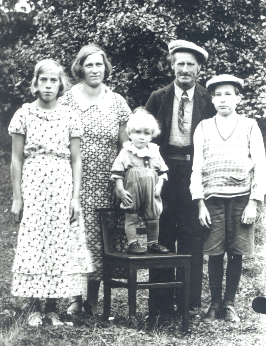Klinten. Familjen Abel och Gunborg Johansson med barnen f.v: Birgit, Bernt, (på stolen) Boije.