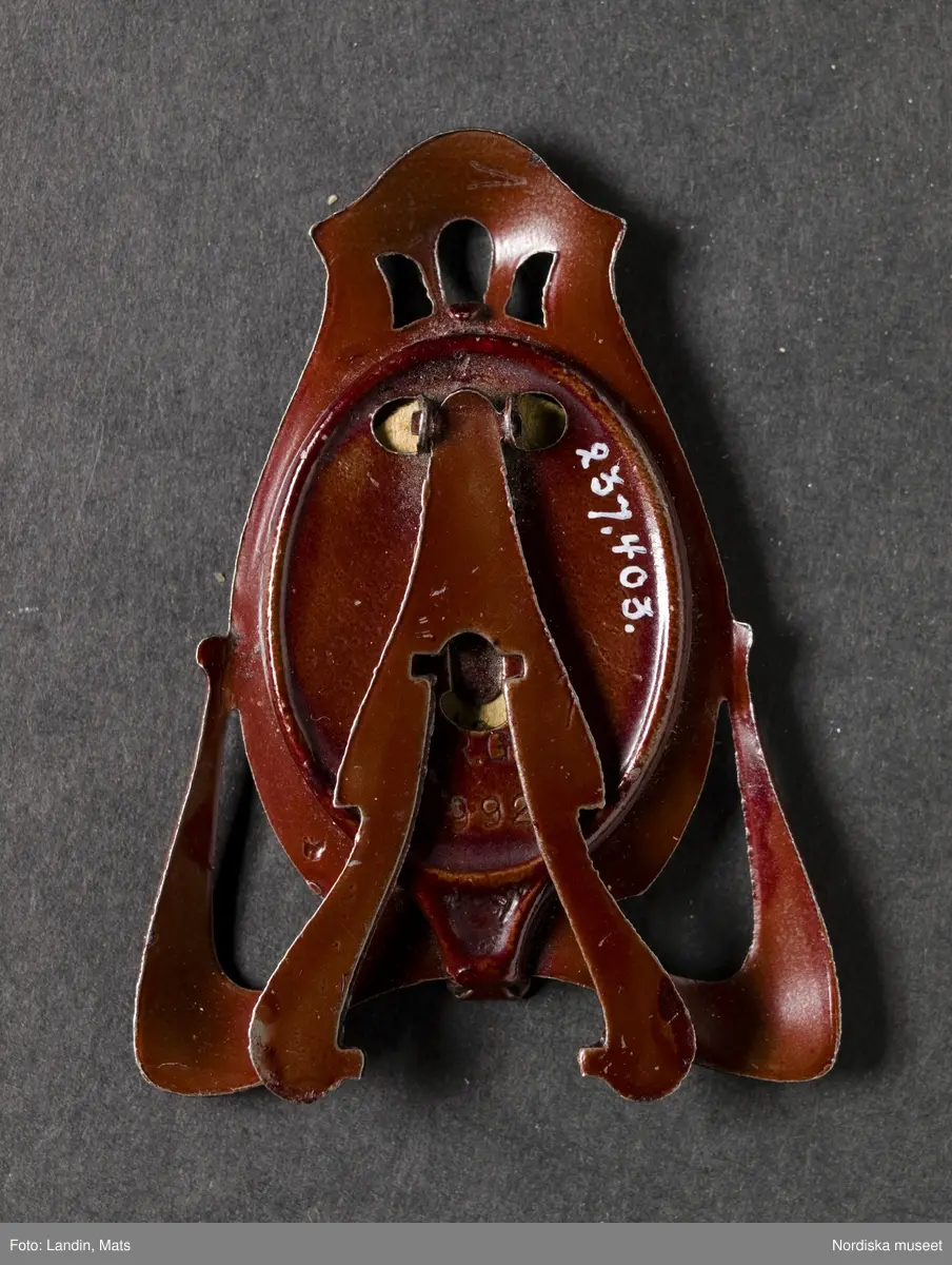Fotografi i ram av brunlackerad plåt i jugendstil.