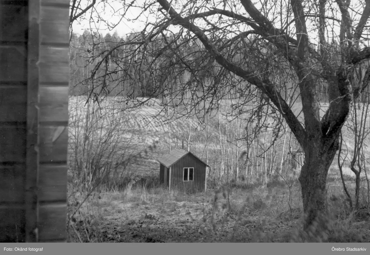 Ett litet uthus vid Knuttimrad stuga vid sommarhemmet Skofttorp, 1949