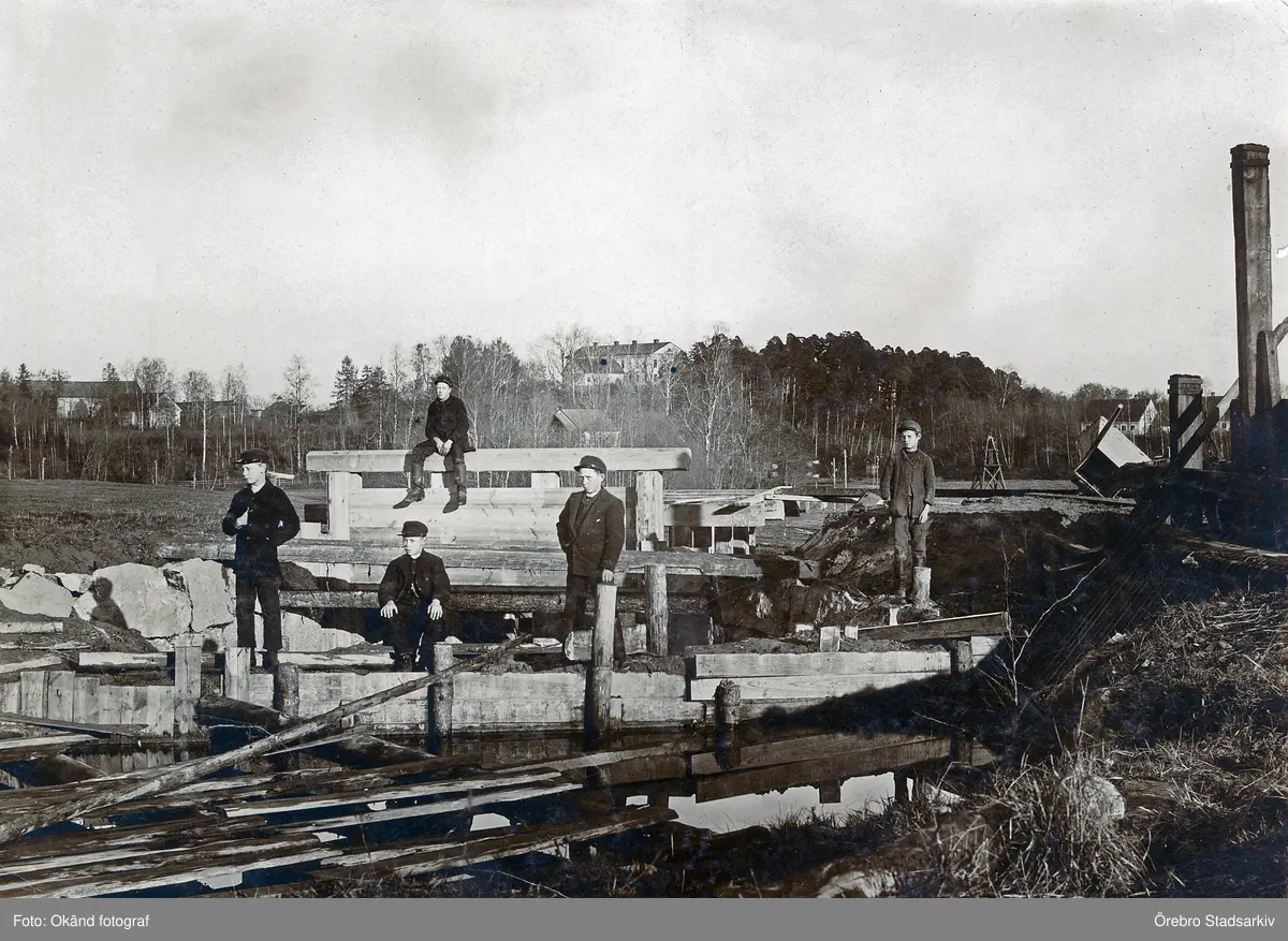 Pojkar vid dammbygget på Karlslunds gård, 1930-tal