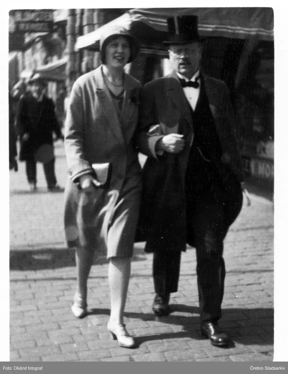 Far och dotter på väg till riksdagens öppnande, Drottninggatan, Stockholm, 1920-tal