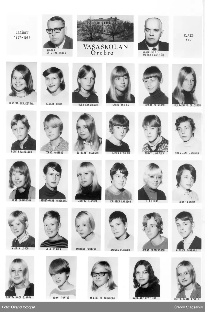Klass 7 E Vasaskolan, 1967-1968