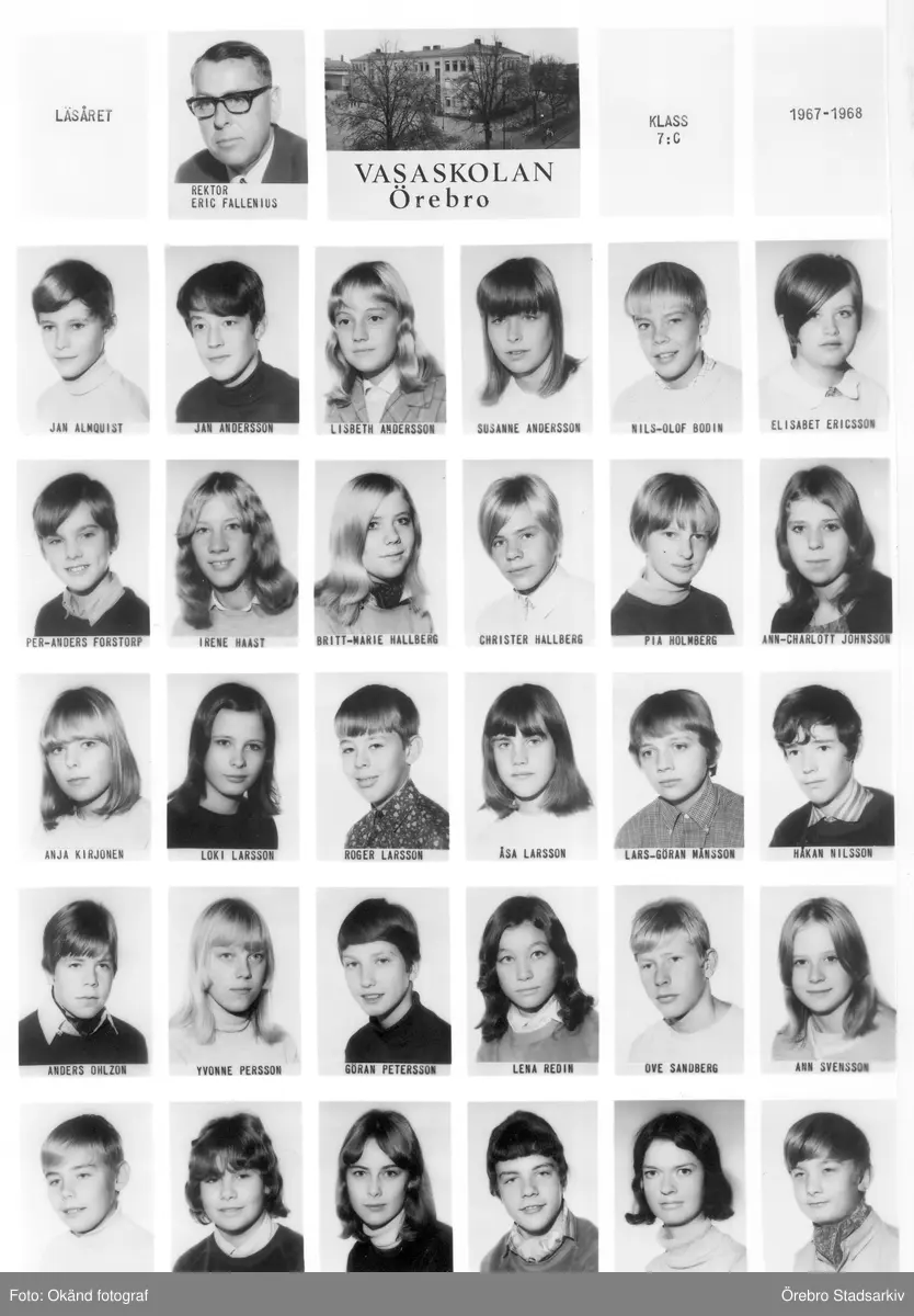 Klass 7 C Vasaskolan, 1967-1968