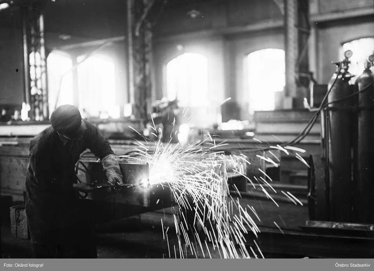 Svetsarbete i plåtslagarverkstaden vid centralverkstäderna, 1902-1910