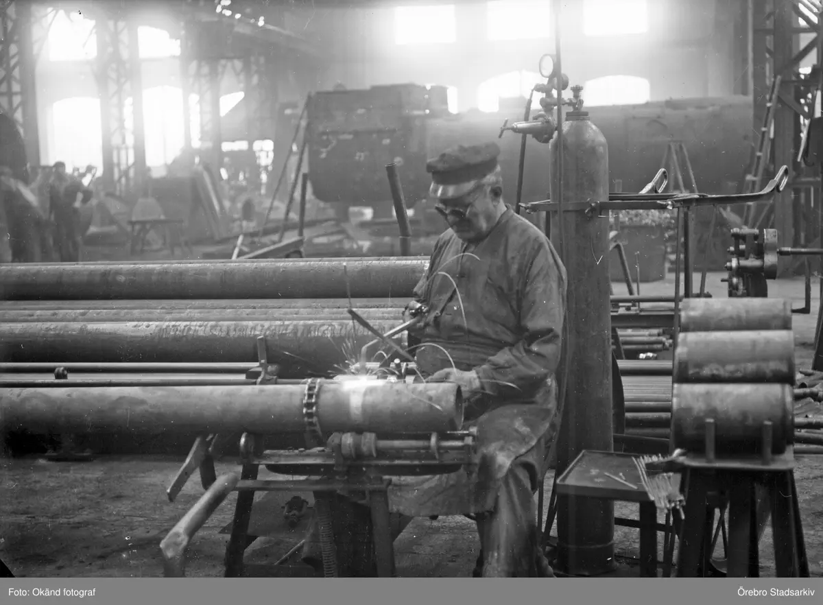 Svetsningsarbete i plåtslagarverkstaden vid centralverkstäderna, 1902-1910
