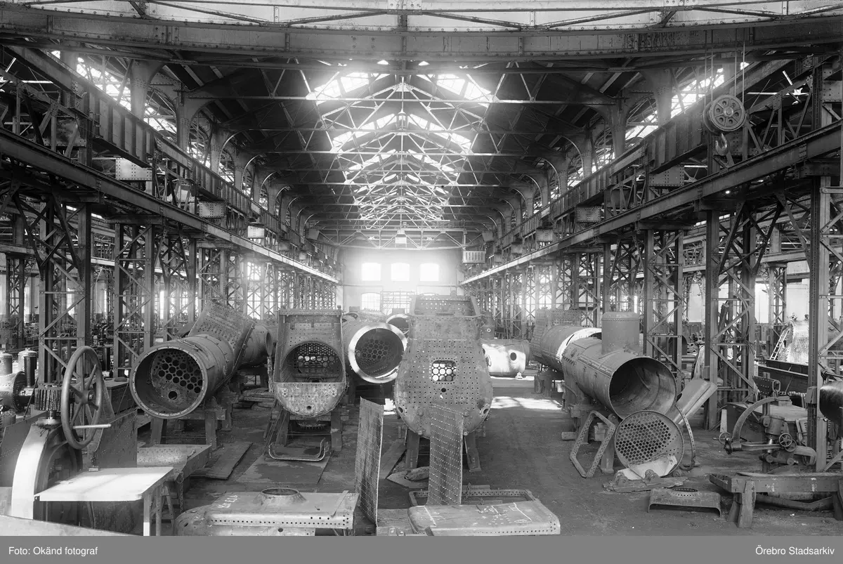 Inne i plåtslageriverkstaden vid Centralverkstäderna, 1902-1909