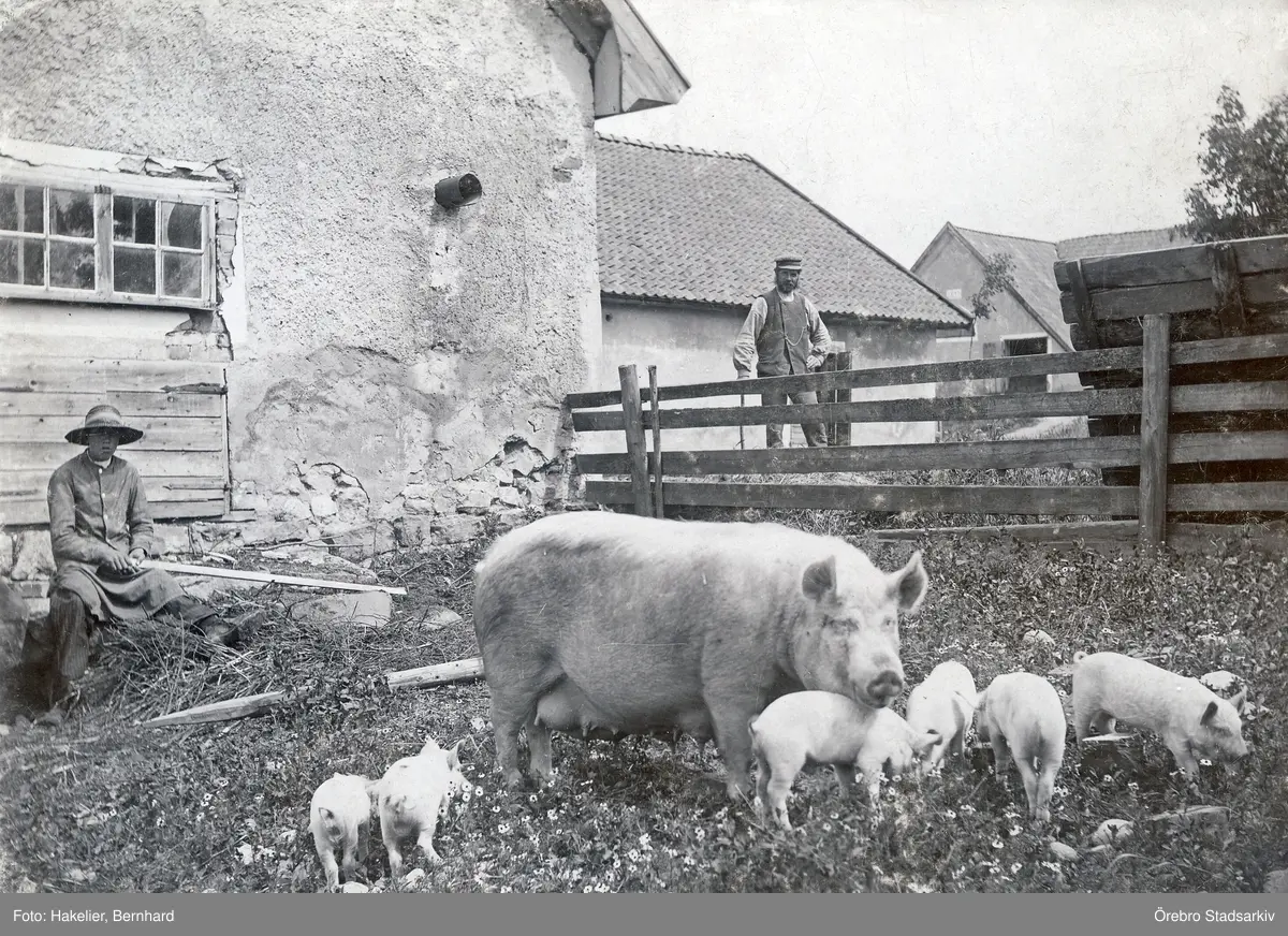 Svinaherde med grisar på Karlslunds gård, 1890-tal
