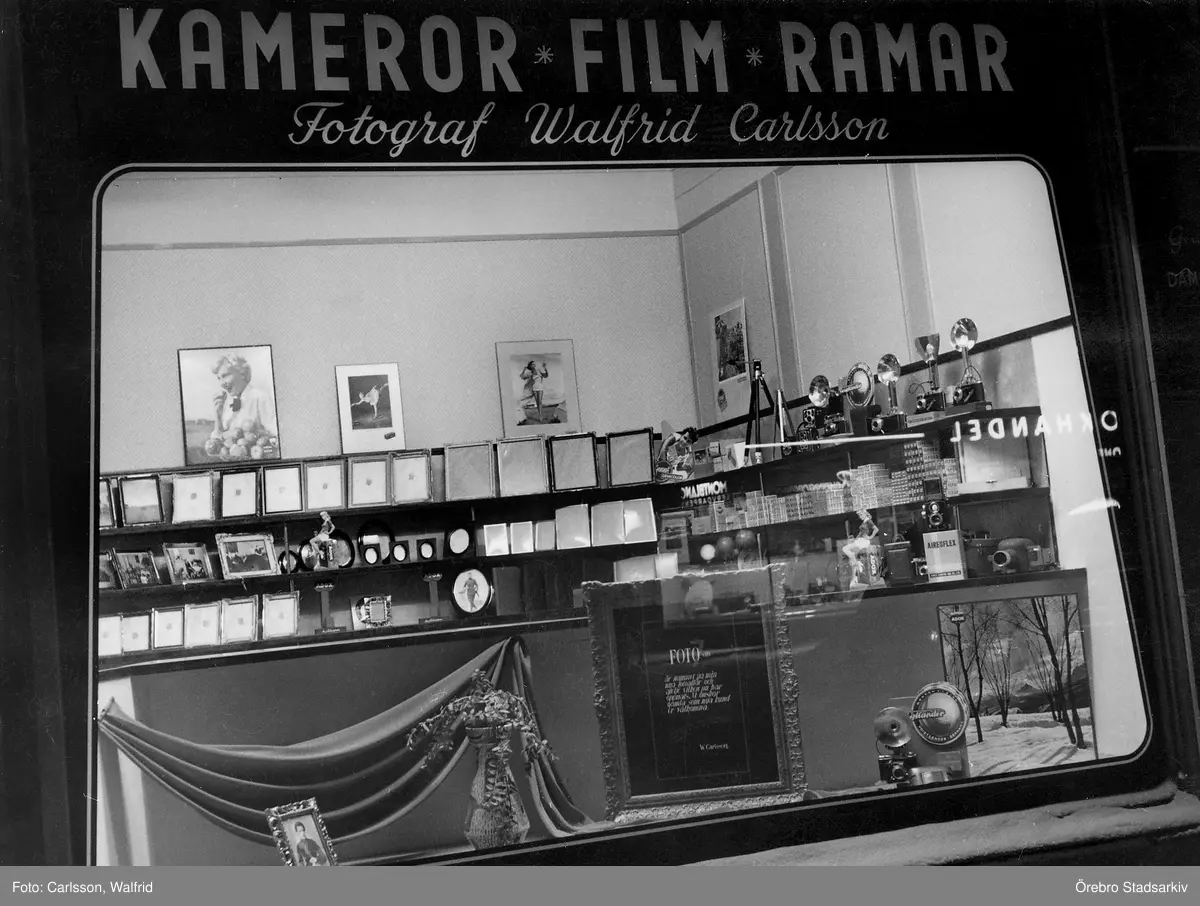 Skyltfönster till Walfrid Carlssons fotoaffär, 1950-tal