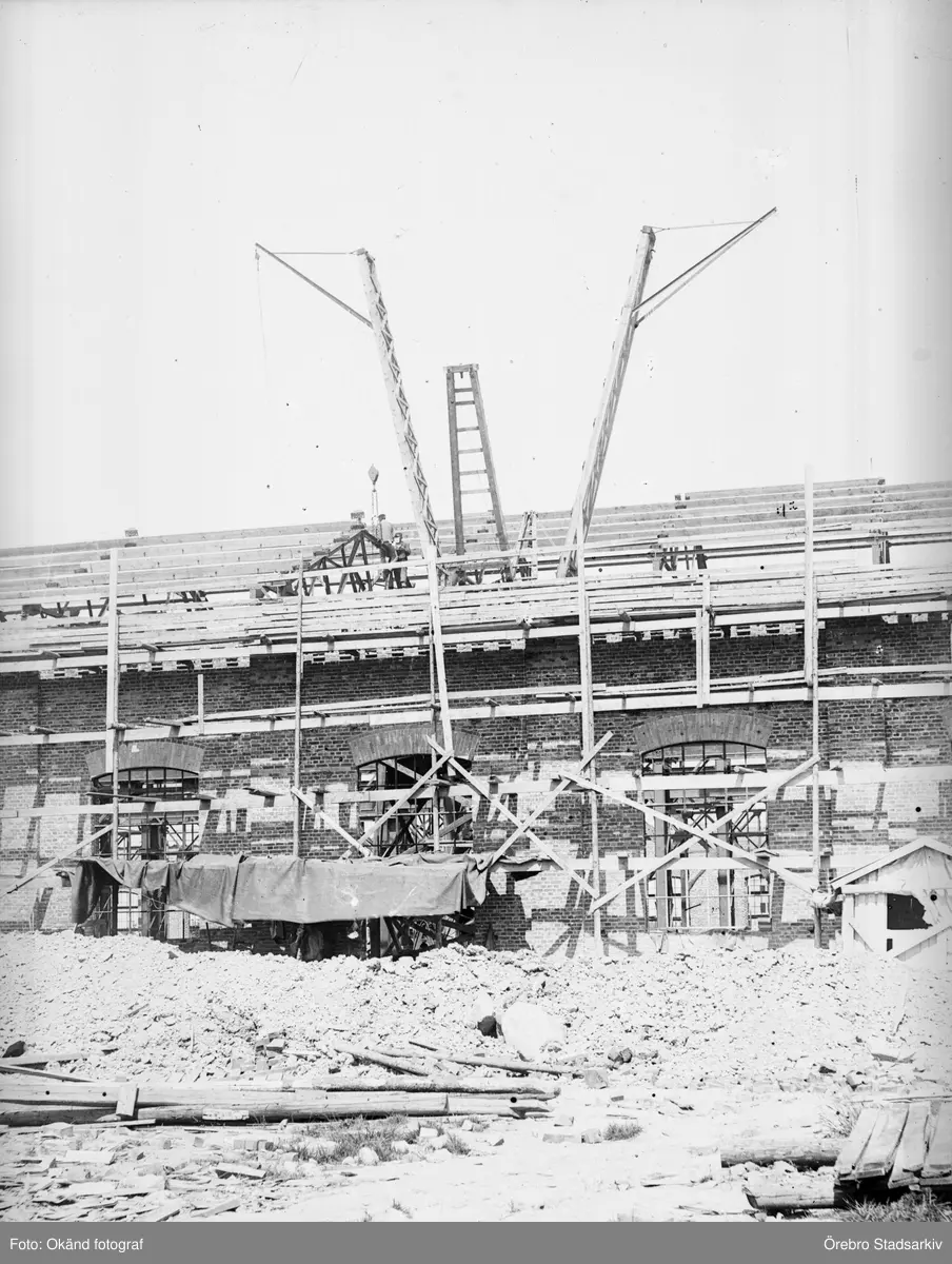 Byggnation av plåtslagarverkstaden vid centralverkstäderna, 1910