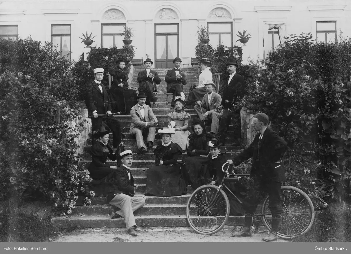Sällskap på trappan på Karlslunds gård, ca 1900