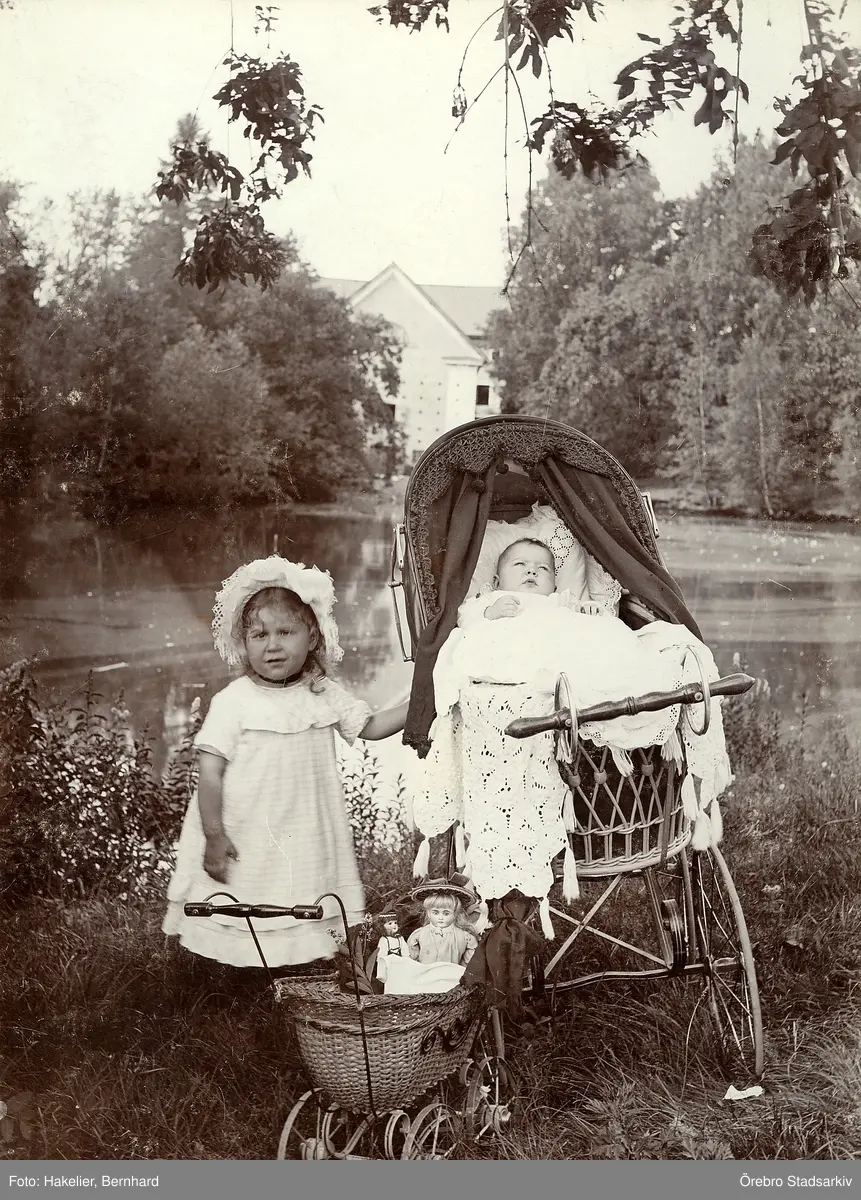 Barn i trädgården på Karlslunds gård, 1890-tal