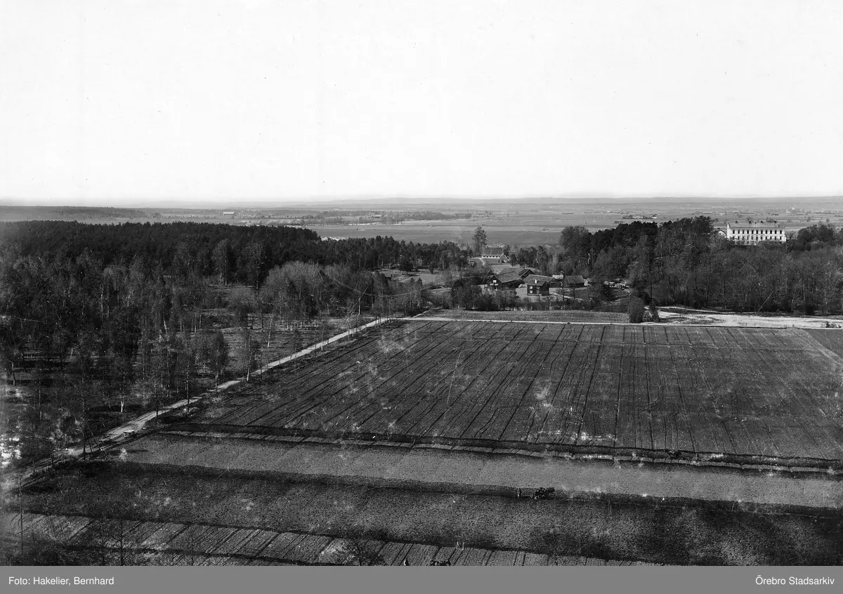 Vy mot Carlsnäs tegelbruk från Åby tegelbruk, 1890-tal