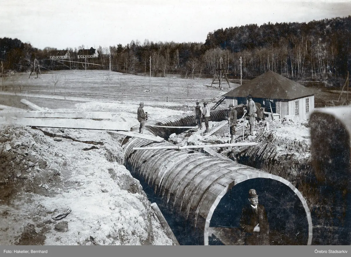 Arbete med turbinrör till kraftstationen på Karlslunds gård, 1890-tal