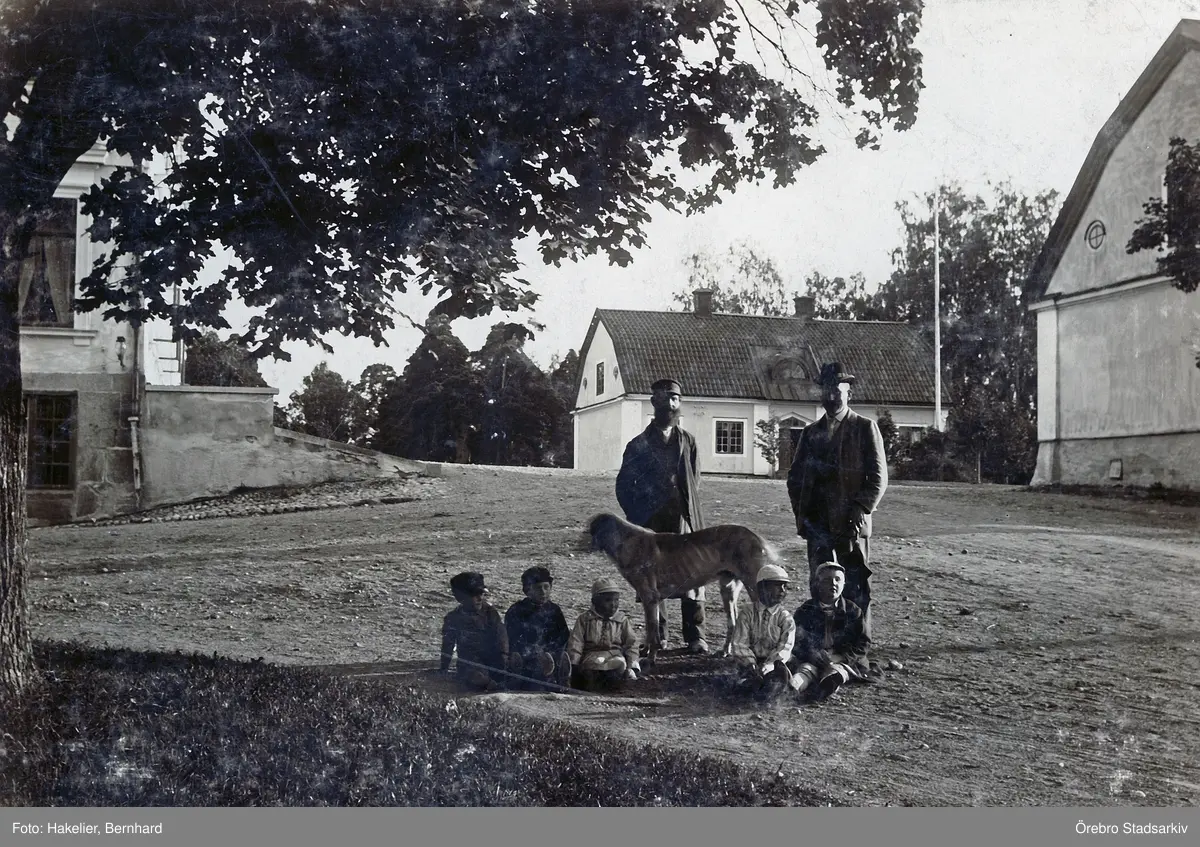 Grupp på gårdsplanen vid Karlslunds gård, 1890-tal