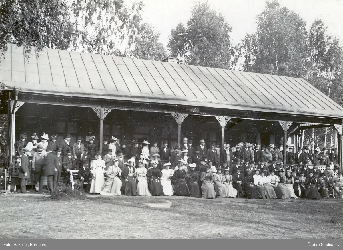 Grupp vid paviljongen i Strömsnäs på Karlslunds gård, 1890-tal
