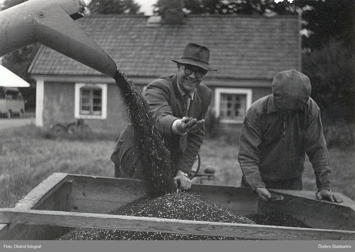 Inspektor Lennart Kilsberger med arbetare på Karlslunds gård, 1960-tal