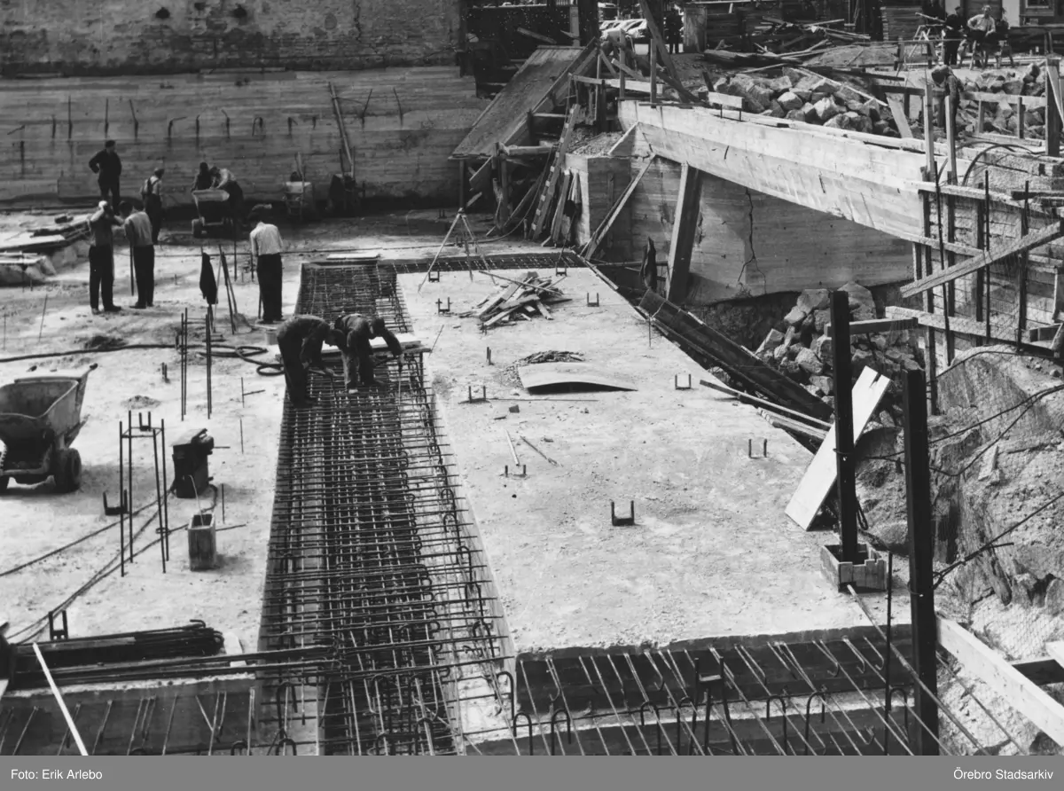 Flera cementgolv klara vid polishusbygget, 1956-06-19