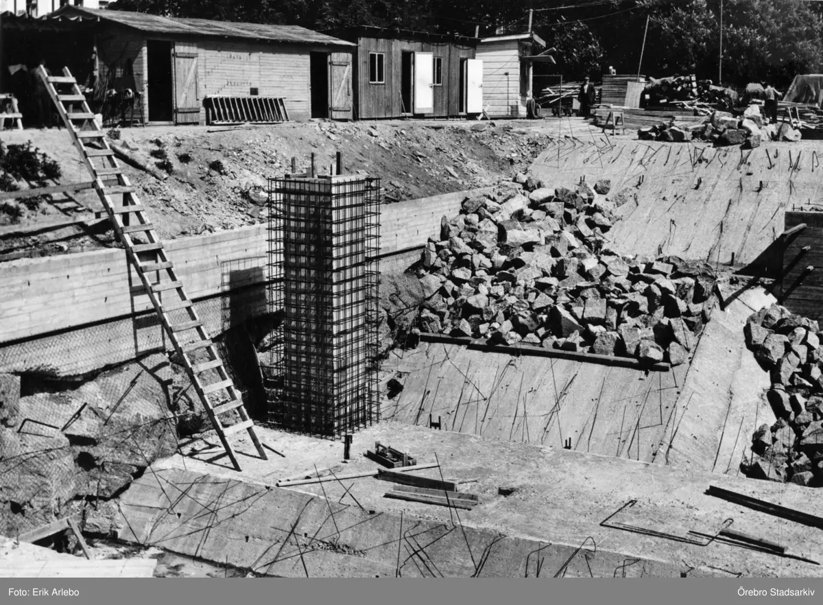 Stege upp ur gropen vid polishusbygget, 1956-06-19
