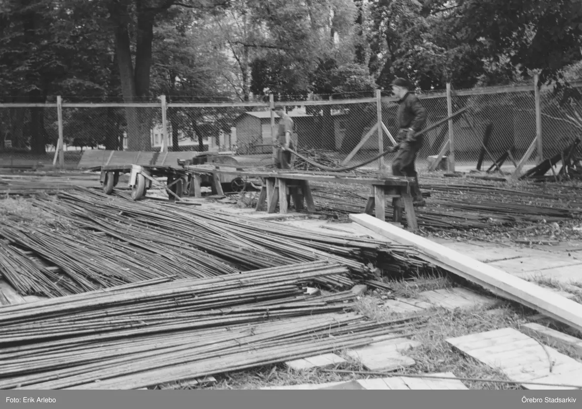 Armeringsjärn sorteras vid polishusbygget, 1956-08-24