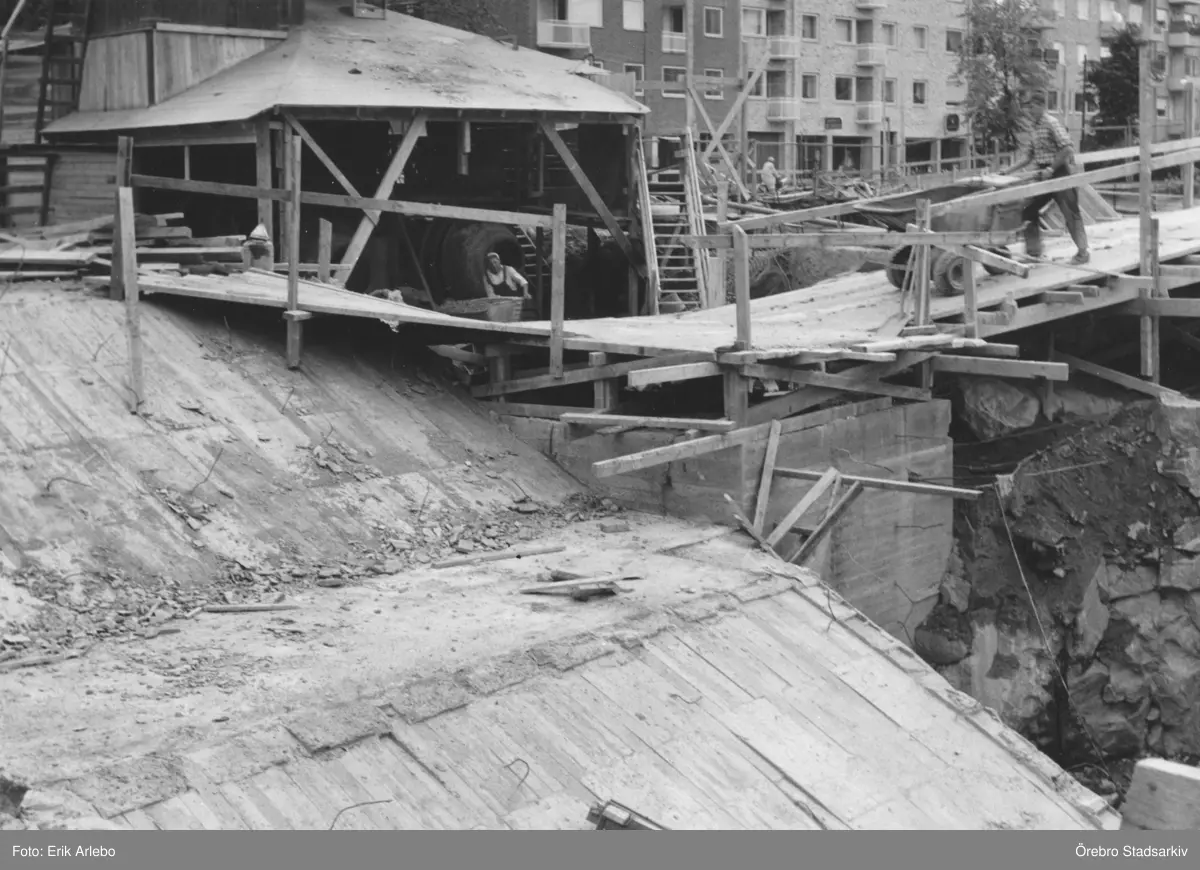 Skottkärror med full last vid polishusbygget, 1956-08-24