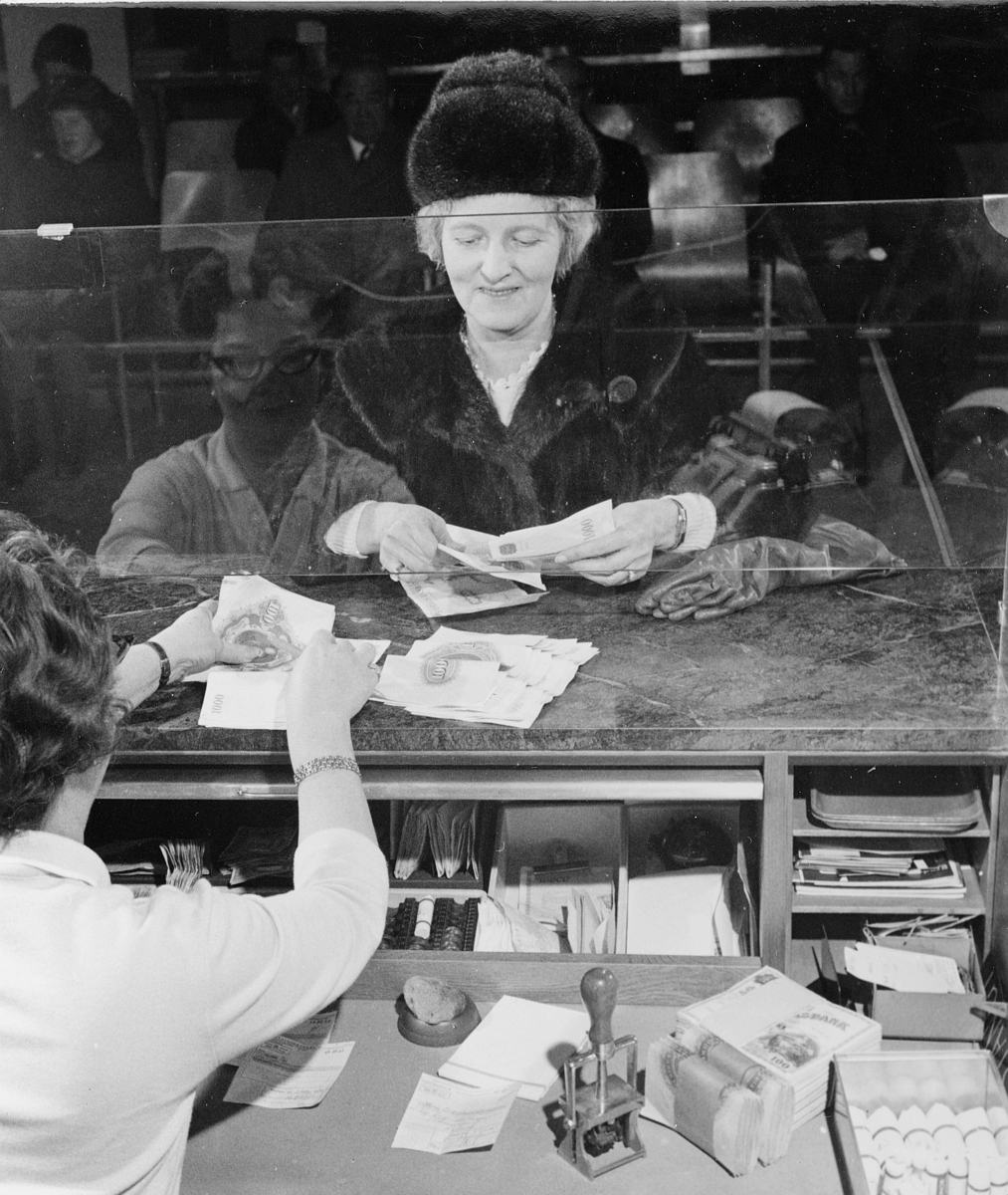 Kassaexpeditionen. Bottenvåningen, med entré från Klara Norra Kyrkogata. Kassa med frontal betjäning.