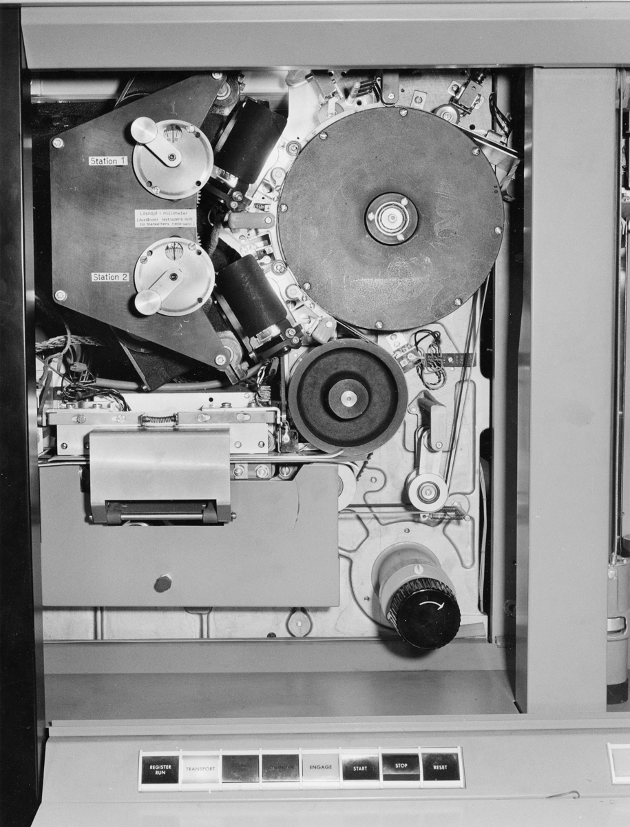 Detalj av den optiska läsaren IBM 1418 Optical Caracter Reader. Det optiska läsorganet med manöverknappar nedtill.