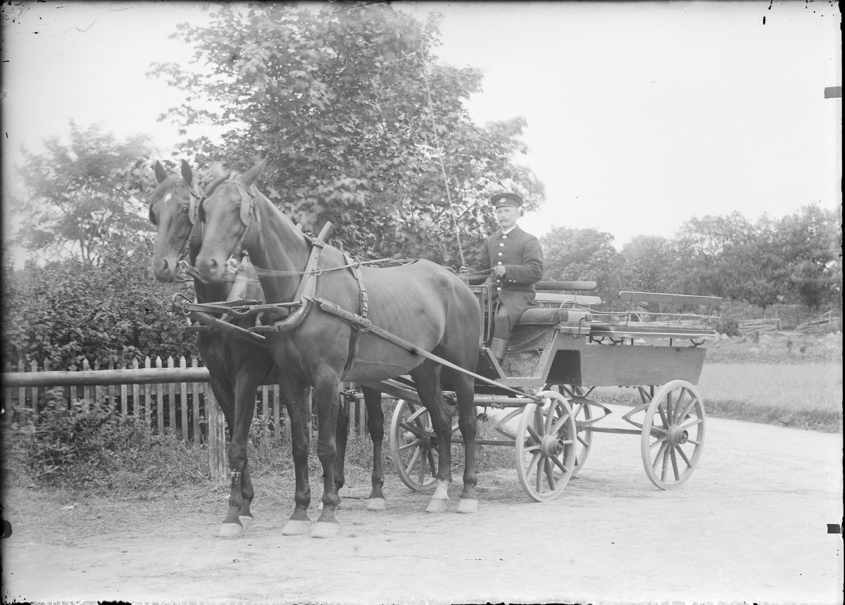 Hästskjuts vid affären i Ernevi, Johannesberg, Funbo socken, Uppland