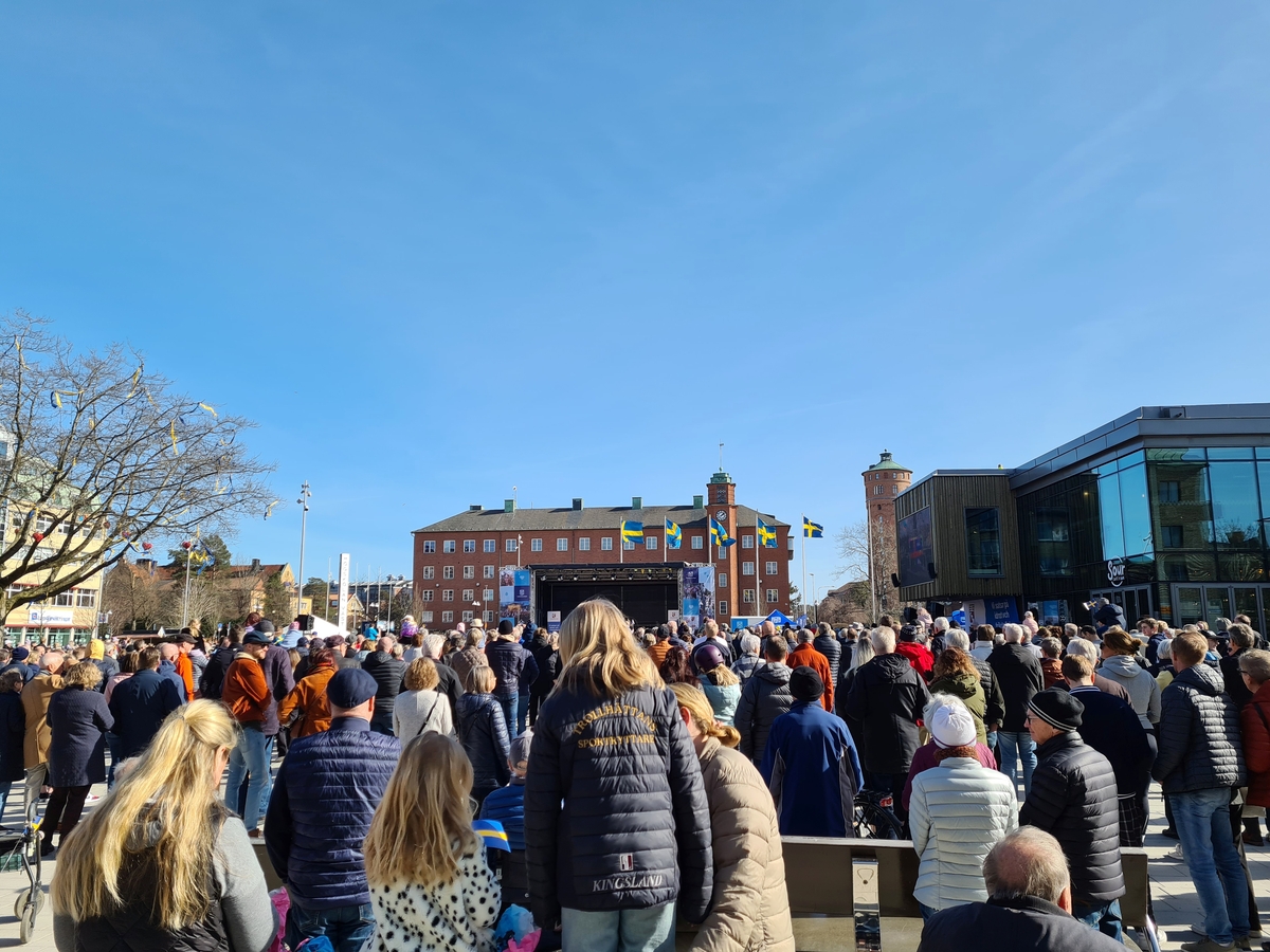 Trollhättan, Drottningtorget. Olympiska mästaren Nils van der Poel firas.