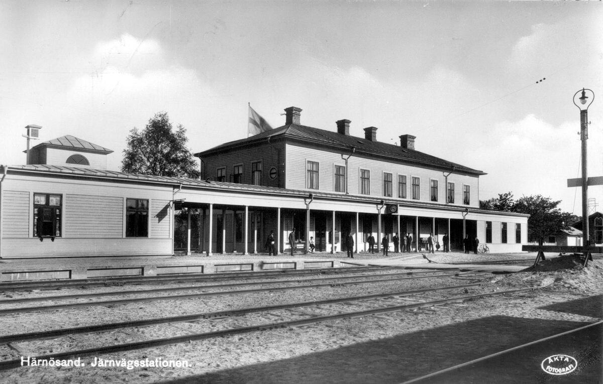 Järnvägsstationen i Härnösand. Vykort