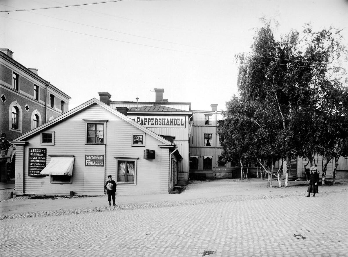Tomt nr 3, bild från Nybrogatan mot N. Till vänster mynnar Köpmangatan.