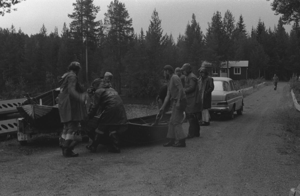 Flottning. Båtarna tas från Sporrsjön till Finnsjön på bilsläp med Reidar Ragnarssons bil.