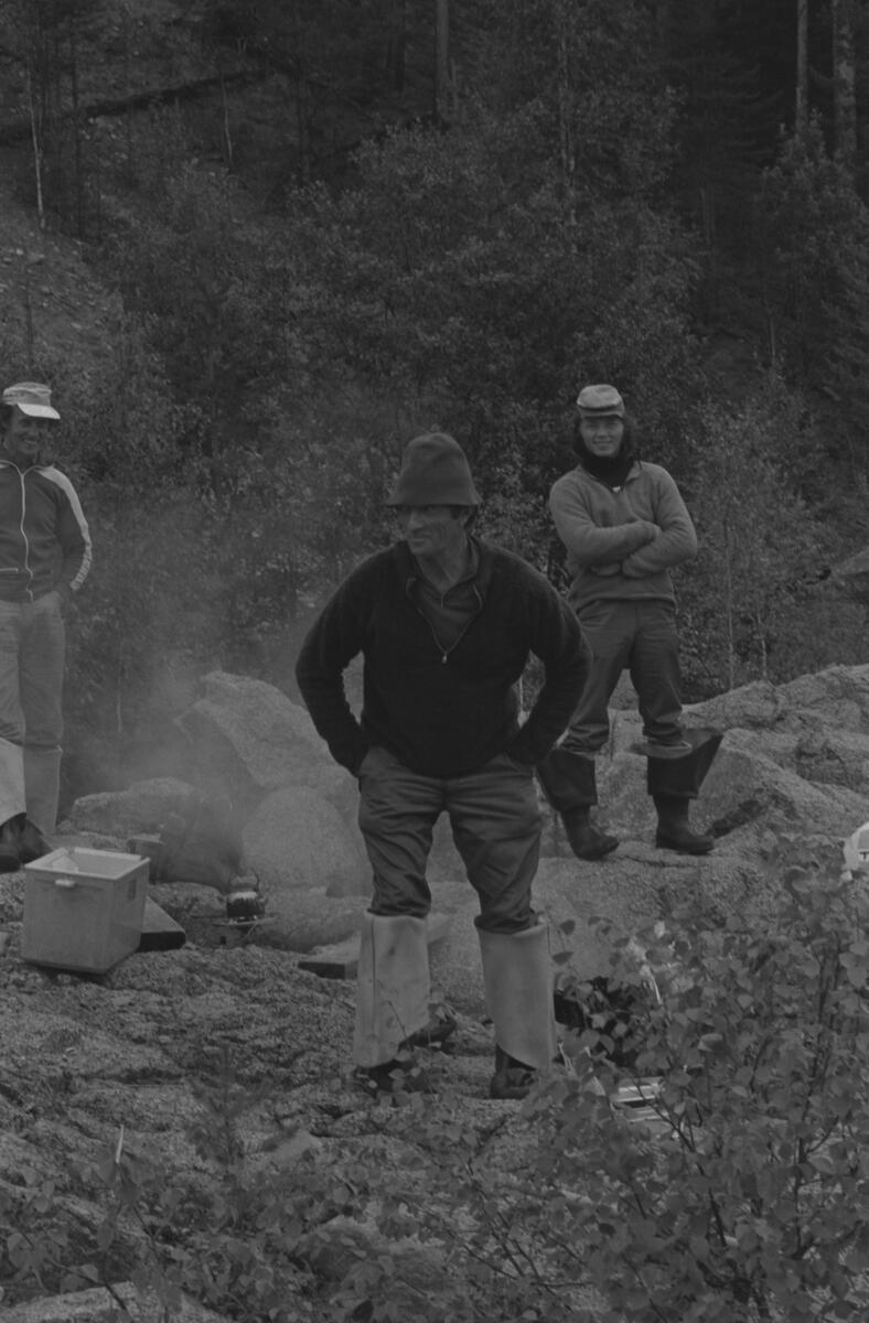 Flottning. Nedströms Ramsele kraftverk. Fika efter brötlossning. Harry Eneröd med flottarhatt.