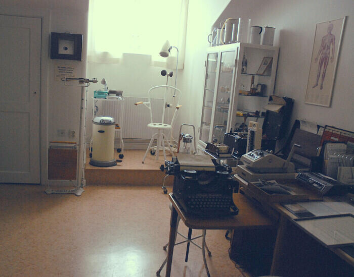 Läkarmottagning med utrustning för öron-näs-halsundersökning.