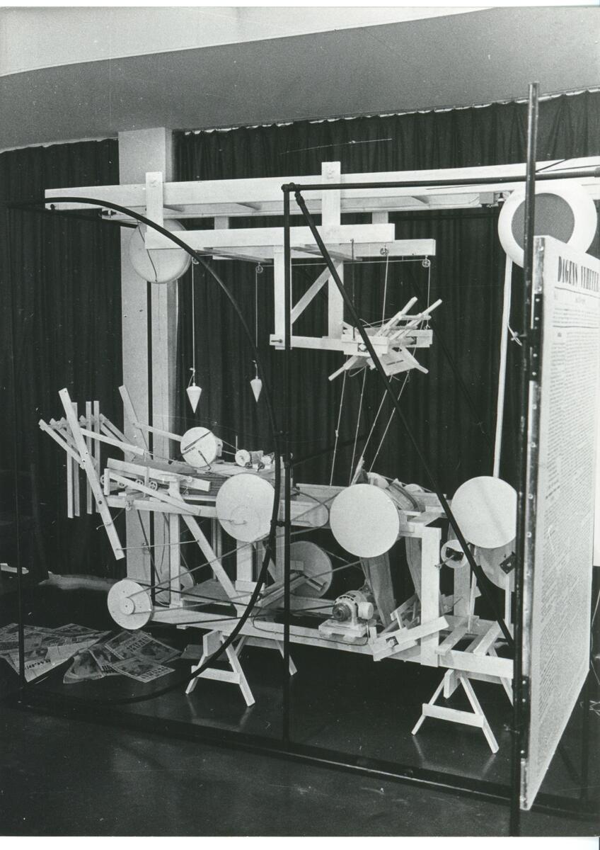 Per Olof Ultvedts och Ulf Lindes tryckpress på utställningen "En tidnings ansikte". Moderna museet