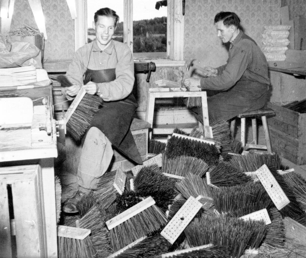 Kommentar från Bengt-Ove Högström 2013:; En historia.; Förrådsmannen Karl-Harald Spetz som arbetade på varvet i Gustafsvik besökte en senvinter em borstbinderiet för att hämta piasava kvastar som hade beställts till varvet. Det var mörkt i borstbinderiet. \" Karl-Harald säger till Seved \"Du måste tända lyset så att du ser något\". Seved lär ha svarat att \" Det har jag inte gjort på årtionden.\"; ; Kommentar från gamla Hemsida:; ; Av Per Westin 2002-04-13 19:28:19; Mannen till vänster i bild heter Seved Eriksson och han till höger Folke Åkerman. Bägge var synskadade och arbetade med borstbinderi i Ramvik.