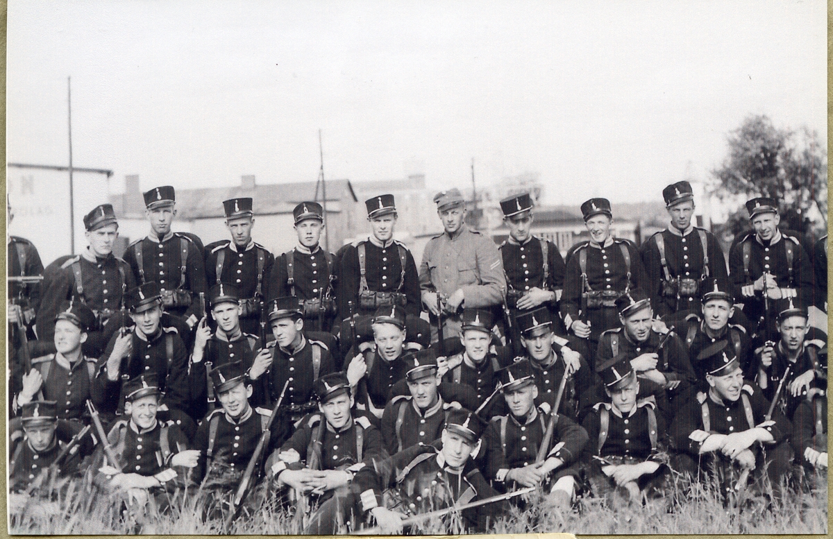 Soldater i äldre uniformer. 1930-40-tal.