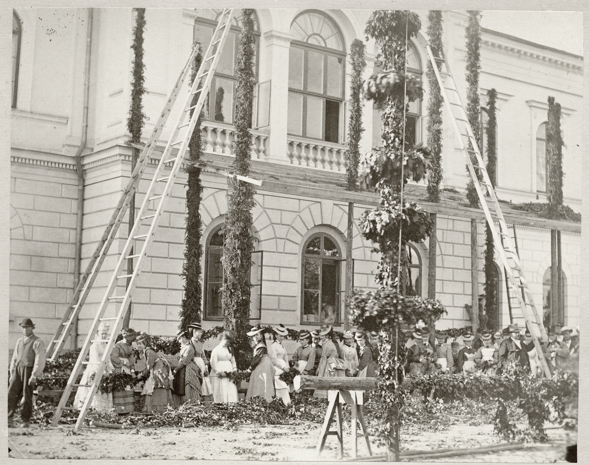 Rådhuset smyckas med växtgirlanger m.m. C:a 1890-tal.