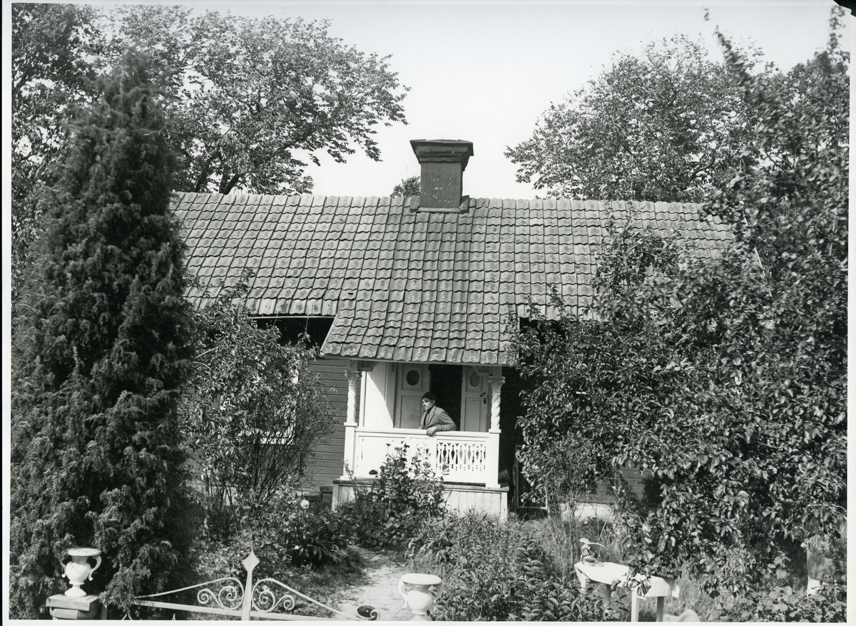Konstnären Filip Pettersson vid stuga i Rytterne.