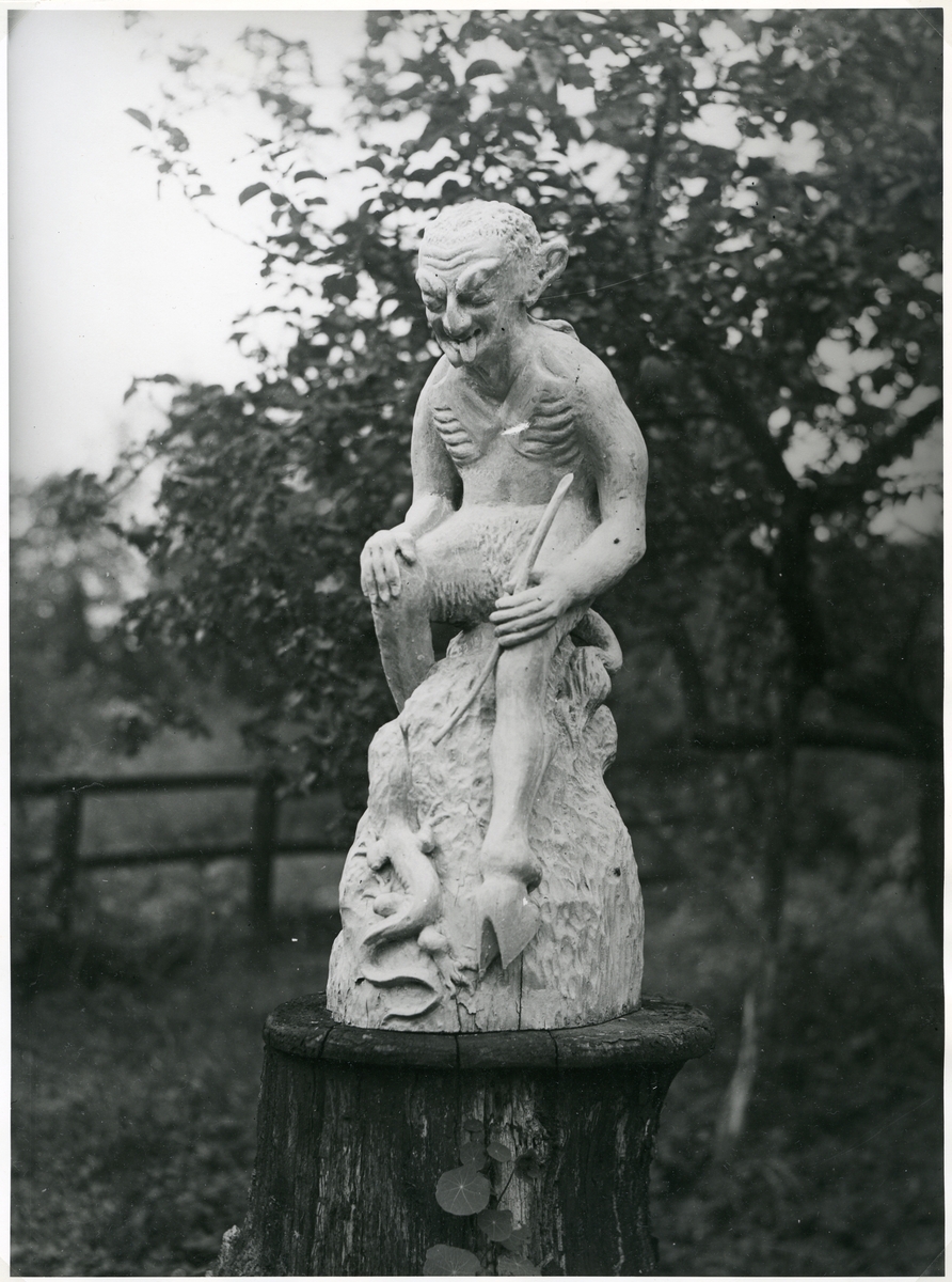 Träskulptur av konstnären Filip Pettersson i Rytterne.