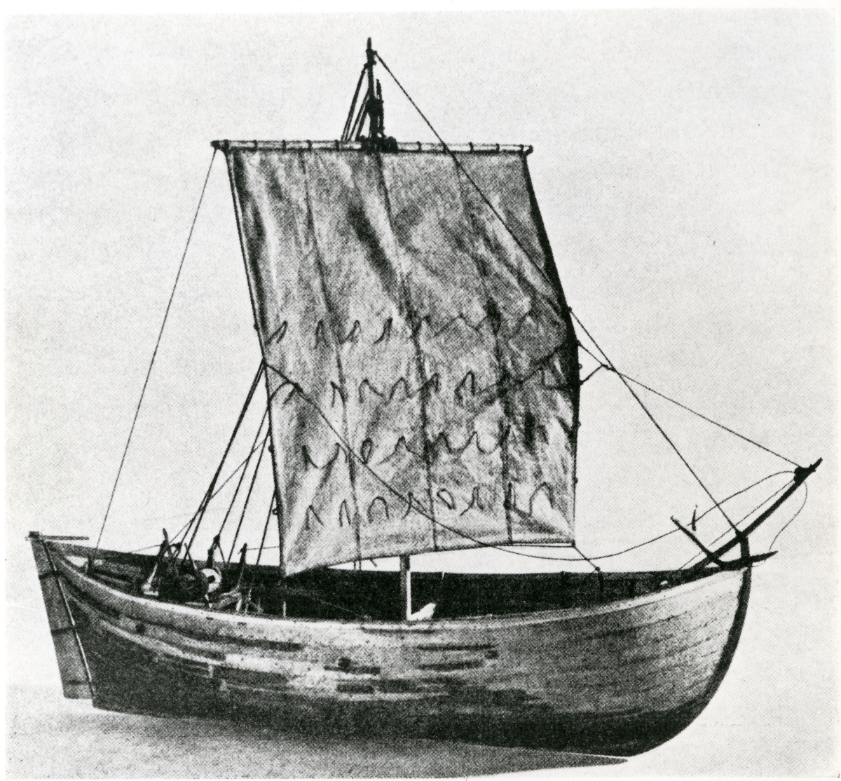 Modell av mindre lastfartyg från 1200-talet.