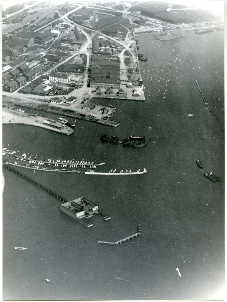 Flygfoto över hamnområdet.