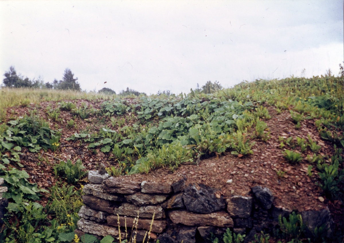 GRester av gamla kalkugnar i Skår, Gökhem. Kalken bröts in på 1940-talet vid Prästgården i Vilske-Kleva och vid Backor, och brändes här.