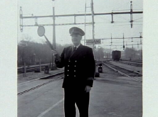 Stationsinspektör Åke Hydborn. Artikel i samband med bilden publicerad i Varbergs Tidning 1953-12-11.