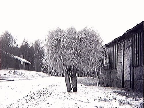Det är före julafton och Knut bär upp halm till hönsen för att de skulle ha det varmt.